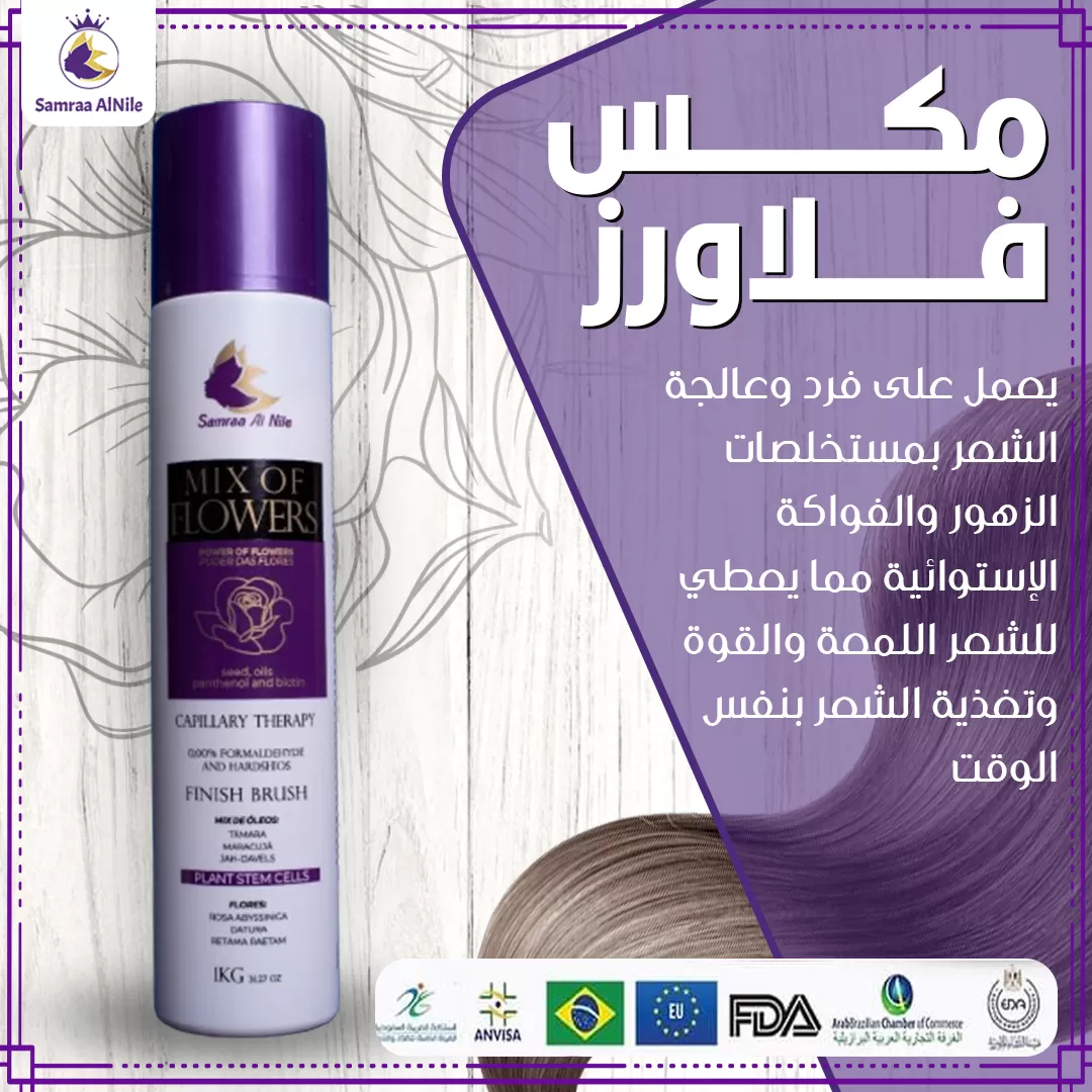 يحتوي الميكس فلاورز على بروتينات الفواكه الإستوائية وزيت الجوجوبا وزيت جنين القمح ومستخلصات الخلايا الجذعية النباتية